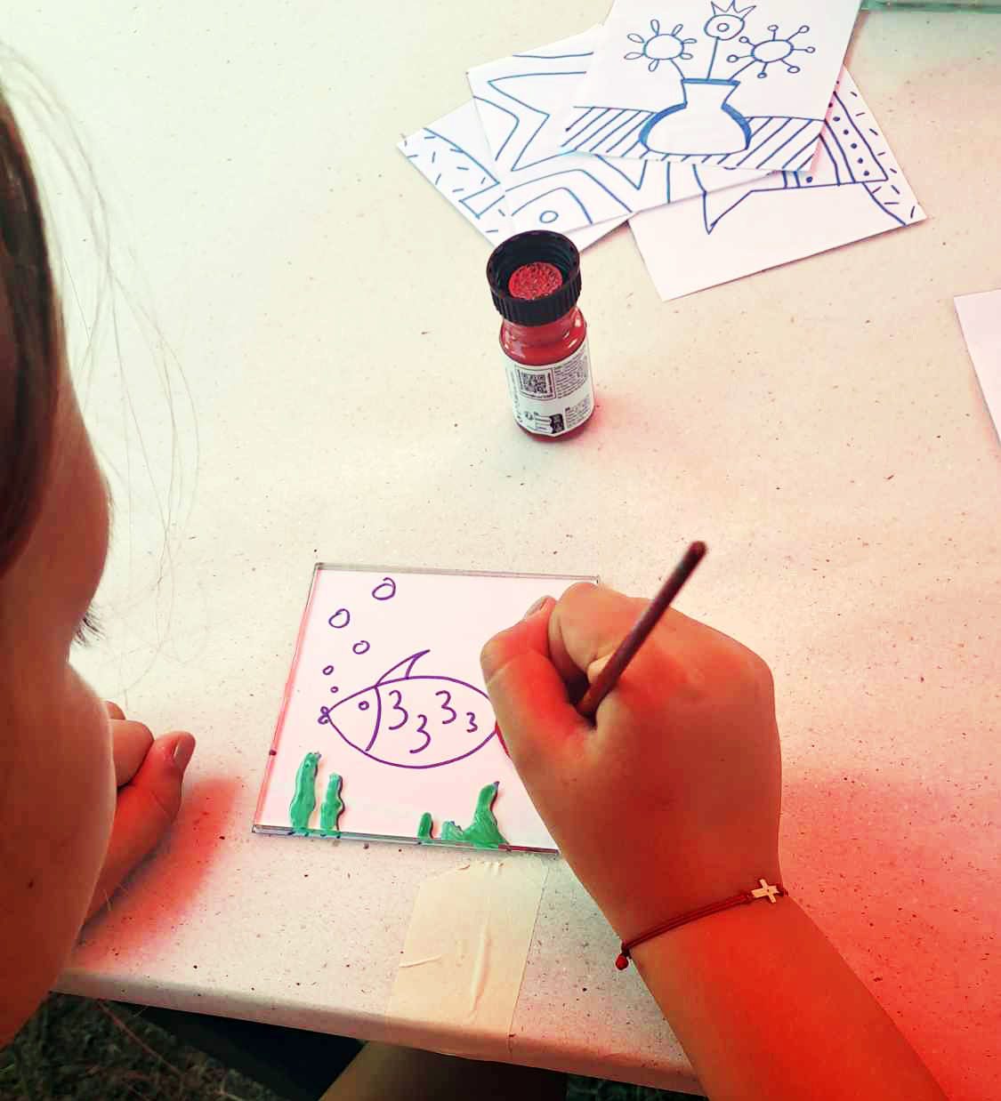 Neda Licheva, who is always experimenting in the spheres of stained glass, ceramics, and art photography, welcomed the fans of reverse painting in the courtyard of the “Baba Rayna” House Museum. The technique is challenging but inspiring, opening up new possibilities for creative expression. Painting an image on the back of a glass surface requires the artist to think in reverse order, starting with the details and ending with the main background.