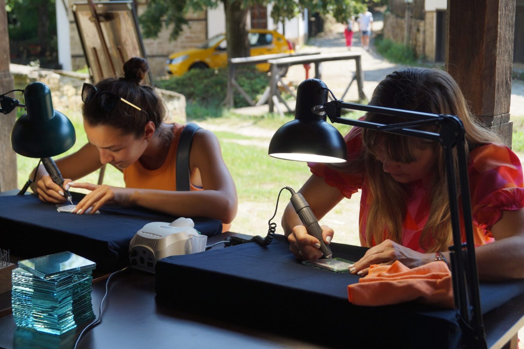 Denitsa Venkova presented the technique of engraving on glass and assisted those wishing to go through the phases of the process with ease, under the canopy of the Wax purification workshop.
