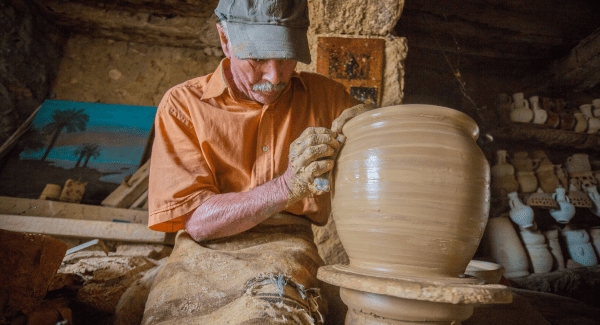 The village of Guellala is Djerba’s main pottery center, its main street is lined with ceramic workshops displaying their wares to visitors, pay a visit to the potters who make large jars reminiscent of the ancient era, follow them down to an underground clay store and try your hand at working the potter’s wheel.