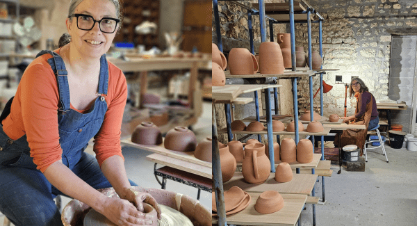 Learn pottery wheel techniques in a ceramist’s studio: explore the professional workshop and tools, prepare the clay, and master the wheel techniques to create a small bowl.