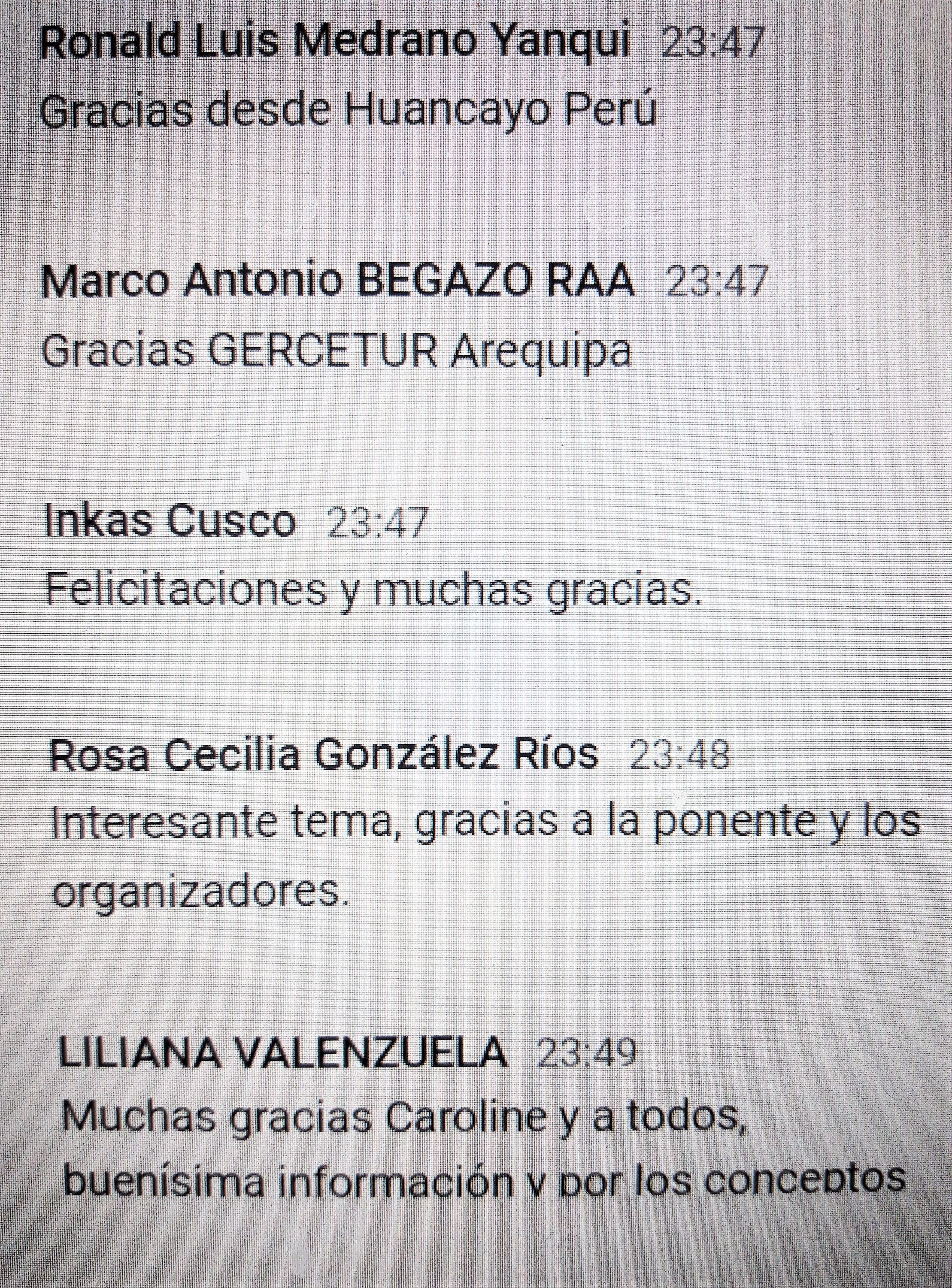 - Webinar sobre turismo creativo para el desarrollo post-codiciado en la región de Arequipa, organizado por el gobierno regional de Arequipa, Perú.