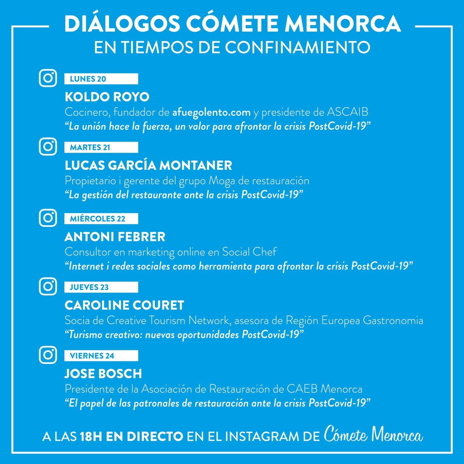 - Webinar sobre turismo creativo y gastronomía en Menorca (Baleares), organizado por CómeteMenorca.